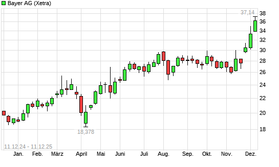Mit dem Anstieg auf 36,74 EUR hat die Bayer-Aktie (ISIN DE000BAY0017) am 10.12.2025 ein neues 12-Monats-Hoch erreicht und damit den Kurs vom 09.12.2025 eingestellt.Die Bayer-Aktie befindet sich ...weiterlesen