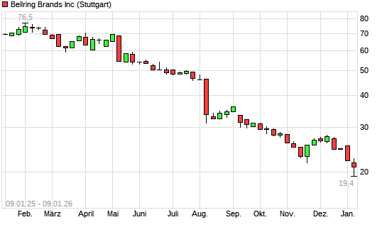 Mit dem Rücksetzer auf 19,10 EUR hat die BellRing Brands-Aktie (ISIN US07831C1036) am 08.01.2026 ein neues 3-Jahres-Tief erreicht und damit den Kurs vom 07.01.2026 eingestellt.Die BellRing ...weiterlesen