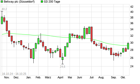 Mit dem Anstieg auf 30,20 EUR hat die Bellway-Aktie am 15.10.2025 die 200-Tage-Linie nach oben gekreuzt.Die Bellway-Aktie befand sich seit dem 10.07.2025 im langfristigen Aufwärtstrend und hat ...weiterlesen