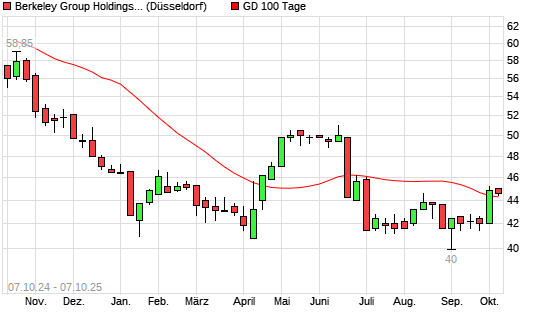Mit dem Anstieg auf 44,60 EUR hat die Berkeley Group Holdings-Aktie am 06.10.2025 die 100-Tage-Linie nach oben gekreuzt.Die Berkeley Group Holdings-Aktie befindet sich seit dem 03.10.2025 im ...weiterlesen