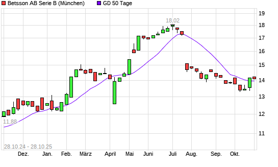Mit dem Anstieg auf 14,07 EUR hat die Betsson-Aktie am 27.10.2025 die 50-Tage-Linie nach oben gekreuzt.Die Betsson-Aktie befindet sich seit dem 29.08.2025 im langfristigen Abwärtstrend und hat ...weiterlesen