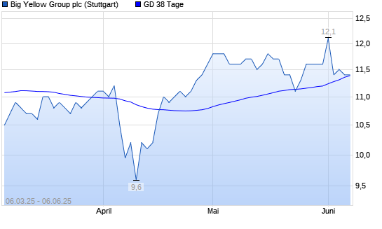 Mit dem Rücksetzer auf 11,30 EUR hat die Big Yellow Group-Aktie am 05.06.2025 die 38-Tage-Linie nach unten gekreuzt.Die Big Yellow Group-Aktie befindet sich seit dem 19.11.2024 im langfristigen ...weiterlesen
