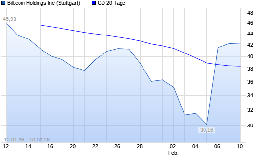 Mit dem Anstieg auf 41,13 EUR hat die Bill.com Holdings-Aktie am 09.02.2026 die 20-Tage-Linie nach oben gekreuzt.Die Bill.com Holdings-Aktie befindet sich seit dem 19.01.2026 im langfristigen ...weiterlesen