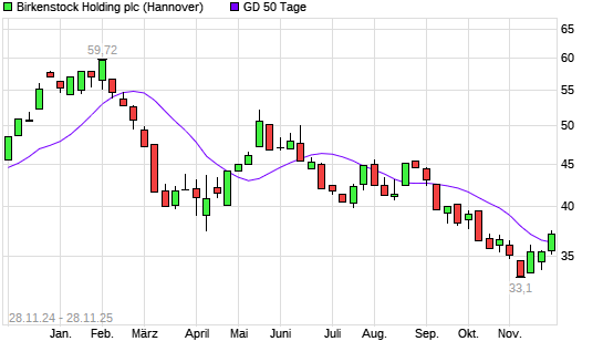 Mit dem Anstieg auf 37,22 EUR hat die Birkenstock Holding-Aktie am 27.11.2025 die 50-Tage-Linie nach oben gekreuzt.Die Birkenstock Holding-Aktie befindet sich seit dem 12.06.2025 im langfristigen ...weiterlesen