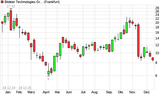Mit dem Rücksetzer auf 8,34 EUR hat die Bitdeer Technologies Group-Aktie (ISIN KYG114481008) am 17.12.2025 ein neues 6-Monats-Tief erreicht und damit den Kurs vom 16.12.2025 eingestellt.Die ...weiterlesen