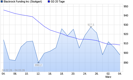 Mit dem Anstieg auf 915,30 EUR hat die BlackRock-Aktie am 03.03.2026 die 20-Tage-Linie nach oben gekreuzt.Die BlackRock-Aktie befindet sich seit dem 03.02.2026 im ...weiterlesen