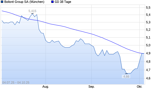 Mit dem Anstieg auf 4,91 EUR hat die Bollore-Aktie am 03.10.2025 die 38-Tage-Linie nach oben gekreuzt.Die Bollore-Aktie befindet sich seit dem 27.05.2025 im langfristigen Abwärtstrend und hat ...weiterlesen
