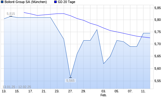 Mit dem Anstieg auf 5,74 EUR hat die Bollore-Aktie am 11.02.2025 die 20-Tage-Linie nach oben gekreuzt.Die Bollore-Aktie befindet sich seit dem 17.12.2024 im langfristigen Abwärtstrend und hat ...weiterlesen