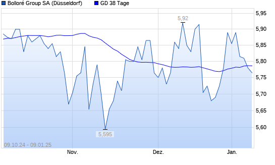 Mit dem Rücksetzer auf 5,79 EUR hat die Bollore-Aktie am 08.01.2025 die 38-Tage-Linie nach unten gekreuzt.Die Bollore-Aktie befindet sich seit dem 17.12.2024 im langfristigen Abwärtstrend ...weiterlesen