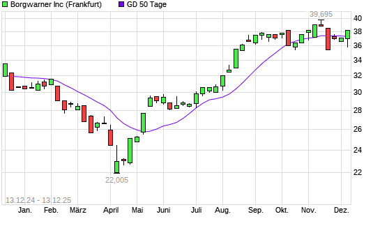Mit dem Anstieg auf 38,24 EUR hat die BorgWarner-Aktie am 12.12.2025 die 50-Tage-Linie nach oben gekreuzt.Die BorgWarner-Aktie befindet sich seit dem 02.07.2025 im langfristigen Aufwärtstrend ...weiterlesen