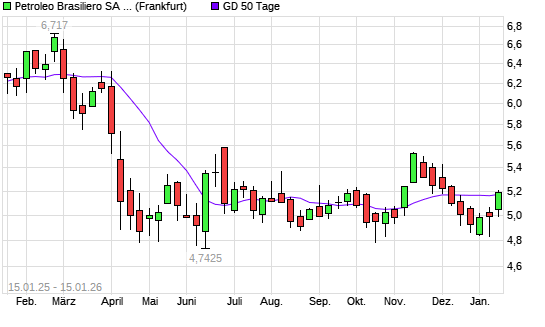 Mit dem Anstieg auf 5,20 EUR hat die Petroleo Brasileiro-Aktie am 14.01.2026 die 50-Tage-Linie nach oben gekreuzt.Die Petroleo Brasileiro-Aktie befindet sich seit dem 13.01.2026 im langfristigen ...weiterlesen