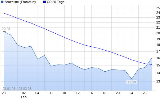 Mit dem Anstieg auf 16,03 EUR hat die Braze-Aktie am 27.02.2026 die 20-Tage-Linie nach oben gekreuzt.Die Braze-Aktie befindet sich seit dem 12.01.2026 im langfristigen Abwärtstrend und ...weiterlesen