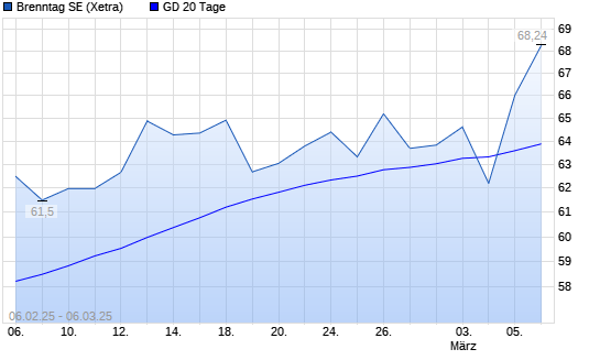 Mit dem Anstieg auf 66,34 EUR hat die Brenntag-Aktie am 05.03.2025 die 20-Tage-Linie nach oben gekreuzt.Die Brenntag-Aktie befindet sich seit dem 20.02.2025 im langfristigen Aufwärtstrend und ...weiterlesen