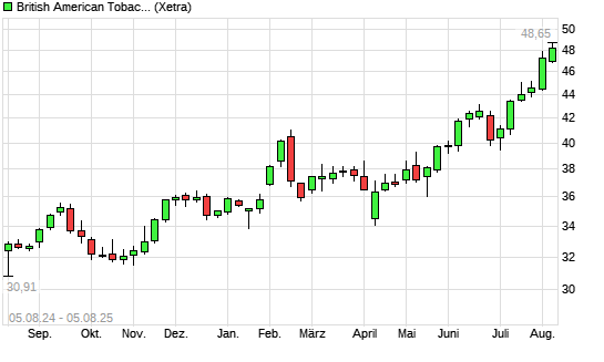 Mit dem Anstieg auf 48,00 EUR hat die British American Tobacco-Aktie (ISIN GB0002875804) am 04.08.2025 ein neues 5-Jahres-Hoch erreicht und damit den Kurs vom 01.08.2025 eingestellt.Die British ...weiterlesen
