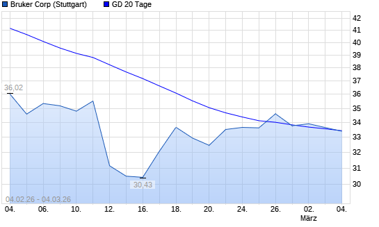 Mit dem Anstieg auf 33,53 EUR hat die Bruker-Aktie am 03.03.2026 die 20-Tage-Linie nach oben gekreuzt.Die Bruker-Aktie befindet sich seit dem 02.03.2026 im langfristigen Abwärtstrend ...weiterlesen
