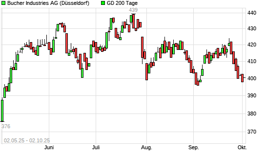 Mit dem Rücksetzer auf 397,50 EUR hat die Bucher Industries-Aktie am 01.10.2025 die 200-Tage-Linie nach unten gekreuzt. ...weiterlesen