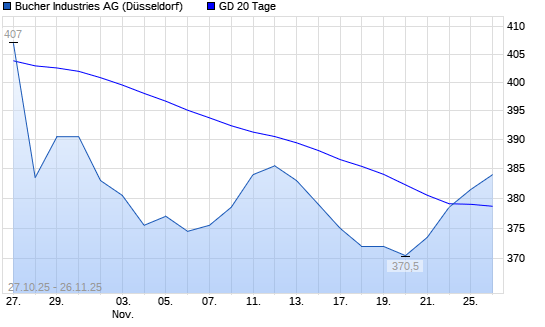 Mit dem Anstieg auf 379,50 EUR hat die Bucher Industries-Aktie am 25.11.2025 die 20-Tage-Linie nach oben gekreuzt.Die Bucher Industries-Aktie befindet sich seit dem 28.10.2025 im langfristigen ...weiterlesen
