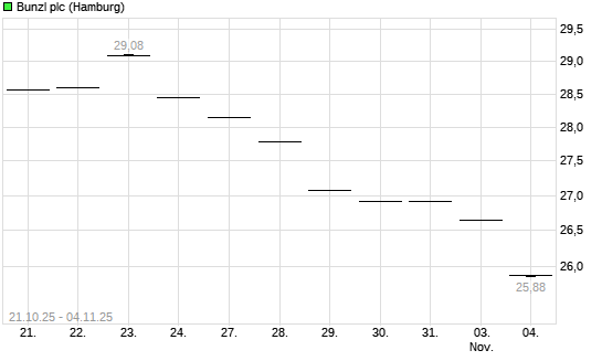 Mit dem Rücksetzer auf 25,54 EUR hat die Bunzl-Aktie (ISIN GB00B0744B38) am 03.11.2025 ein neues 3-Jahres-Tief erreicht und damit den Kurs vom 05.08.2025 eingestellt.Die Bunzl-Aktie befindet ...weiterlesen