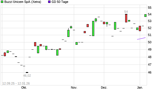 Mit dem Rücksetzer auf 51,30 EUR hat die Buzzi Unicem-Aktie am 13.01.2026 die 50-Tage-Linie nach unten gekreuzt.Die Buzzi Unicem-Aktie befindet sich seit dem 04.09.2025 ...weiterlesen