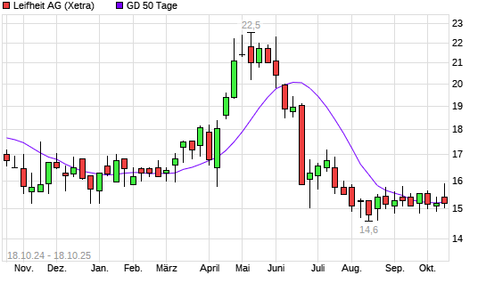 Mit dem Rücksetzer auf 15,00 EUR hat die Leifheit-Aktie am 17.10.2025 die 50-Tage-Linie nach unten gekreuzt.Die Leifheit-Aktie befindet sich seit dem 19.06.2025 im langfristigen Abwärtstrend ...weiterlesen