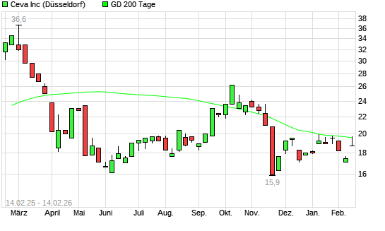 Mit dem Rücksetzer auf 18,80 EUR hat die CEVA-Aktie am 13.02.2026 die 200-Tage-Linie nach unten gekreuzt.Die CEVA-Aktie befand sich seit dem 12.02.2026 im langfristigen Aufwärtstrend und ...weiterlesen
