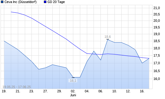 Mit dem Rücksetzer auf 17,10 EUR hat die CEVA-Aktie am 16.06.2025 die 20-Tage-Linie nach unten gekreuzt.Die CEVA-Aktie befindet sich seit dem 28.03.2025 im langfristigen Abwärtstrend und ...weiterlesen