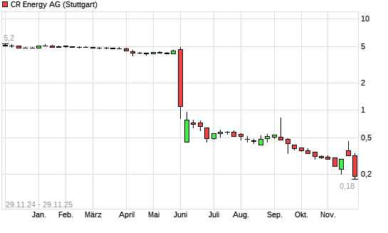Mit dem Rücksetzer auf 0,20 EUR hat die CR Energy-Aktie (ISIN DE000A2GS625) am 28.11.2025 ein neues All-Time-Low erreicht und damit den Kurs vom 13.11.2025 eingestellt.Die CR Energy-Aktie ...weiterlesen