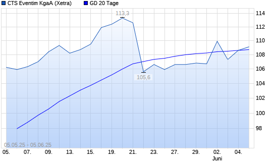 Mit dem Rücksetzer auf 106,90 EUR hat die CTS Eventim-Aktie am 04.06.2025 die 20-Tage-Linie nach unten gekreuzt.Die CTS Eventim-Aktie befindet sich seit dem 10.04.2025 im langfristigen ...weiterlesen