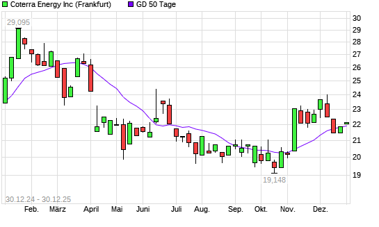 Mit dem Anstieg auf 22,07 EUR hat die Cabot Oil & Gas-Aktie am 29.12.2025 die 50-Tage-Linie nach oben gekreuzt.Die Cabot Oil & Gas-Aktie befindet sich seit dem 23.12.2025 im langfristigen ...weiterlesen