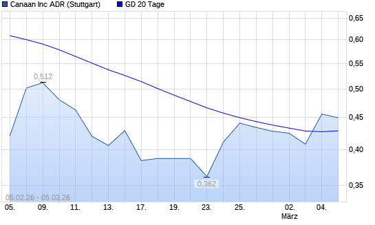 Mit dem Anstieg auf 0,45 EUR hat die Canaan-Aktie am 04.03.2026 die 20-Tage-Linie nach oben gekreuzt.Die Canaan-Aktie befindet sich seit dem 15.01.2026 im langfristigen Abwärtstrend ...weiterlesen
