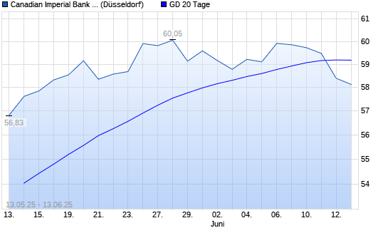 Mit dem Rücksetzer auf 58,60 EUR hat die Canadian Imperial Bank of Comm-Aktie am 12.06.2025 die 20-Tage-Linie nach unten gekreuzt.Die Canadian Imperial Bank of Comm-Aktie befindet sich ...weiterlesen