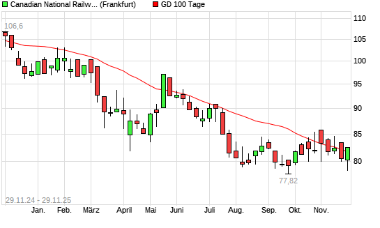Mit dem Anstieg auf 82,46 EUR hat die Canadian National Railway-Aktie am 28.11.2025 die 100-Tage-Linie nach oben gekreuzt.Die Canadian National Railway-Aktie befindet sich seit dem 17.06.2024 ...weiterlesen