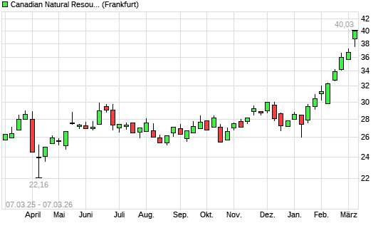 Mit dem Anstieg auf 40,03 EUR hat die Canadian Natural Resources-Aktie (ISIN CA1363851017) am 06.03.2026 ein neues All-Time-High erreicht und damit den Kurs vom 05.03.2026 ...weiterlesen