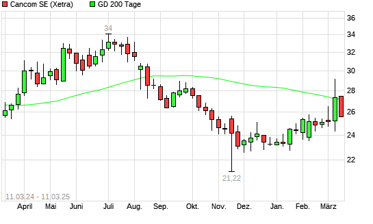 Mit dem Rücksetzer auf 26,70 EUR hat die Cancom-Aktie am 10.03.2025 die 200-Tage-Linie nach unten gekreuzt.Die Cancom-Aktie befand sich seit dem 05.03.2025 im ...weiterlesen