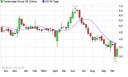 Mit dem Rücksetzer auf 3,13 EUR hat die Cantourage Group-Aktie am 17.10.2025 die 50-Tage-Linie nach unten gekreuzt.Die Cantourage Group-Aktie befindet sich seit dem 09.07.2025 im langfristigen ...weiterlesen