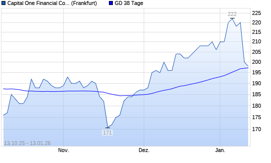Mit dem Rücksetzer auf 200,00 EUR hat die Capital One Financial-Aktie am 12.01.2026 die 38-Tage-Linie nach unten gekreuzt.Die Capital One Financial-Aktie befindet sich seit ...weiterlesen