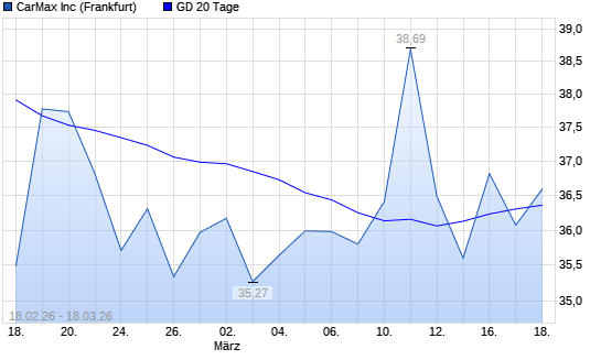 Mit dem Rücksetzer auf 36,07 EUR hat die CarMax-Aktie am 17.03.2026 die 20-Tage-Linie nach unten gekreuzt.Die CarMax-Aktie befindet sich seit dem 03.04.2025 im ...weiterlesen