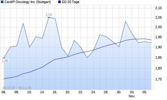 Mit dem Rücksetzer auf 1,87 EUR hat die Cardiff Oncology-Aktie am 05.11.2025 die 20-Tage-Linie nach unten gekreuzt.Die Cardiff Oncology-Aktie befindet sich seit dem 29.07.2025 im langfristigen ...weiterlesen