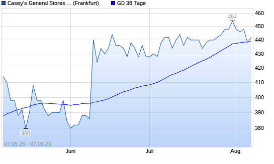 Mit dem Rücksetzer auf 438,00 EUR hat die Caseys General Stores-Aktie am 06.08.2025 die 38-Tage-Linie nach unten gekreuzt.Die Caseys General Stores-Aktie befindet sich seit ...weiterlesen