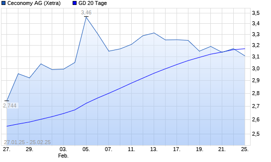 Mit dem Rücksetzer auf 3,14 EUR hat die Ceconomy St-Aktie am 24.02.2025 die 20-Tage-Linie nach unten gekreuzt.Die Ceconomy St-Aktie befindet sich seit dem 29.01.2025 im langfristigen Aufwärtstrend ...weiterlesen
