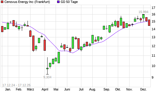 Mit dem Rücksetzer auf 14,87 EUR hat die Cenovus Energy-Aktie am 16.12.2025 die 50-Tage-Linie nach unten gekreuzt.Die Cenovus Energy-Aktie befindet sich seit dem 22.08.2025 ...weiterlesen
