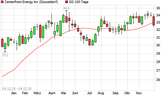 Mit dem Rücksetzer auf 32,60 EUR hat die CenterPoint Energy-Aktie am 03.12.2025 die 100-Tage-Linie nach unten gekreuzt.Die CenterPoint Energy-Aktie befindet sich seit dem 18.09.2025 im ...weiterlesen