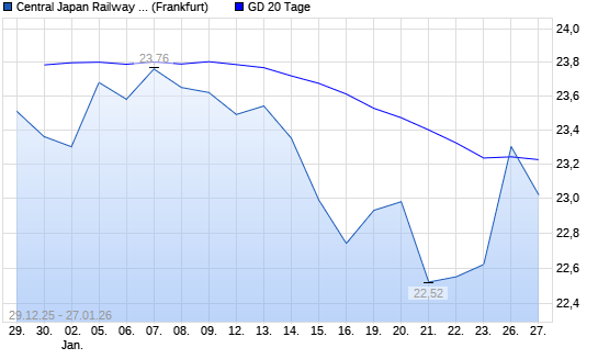 Mit dem Anstieg auf 23,30 EUR hat die Central Japan Railway-Aktie am 26.01.2026 die 20-Tage-Linie nach oben gekreuzt.Die Central Japan Railway-Aktie befindet sich seit dem 27.06.2025 ...weiterlesen