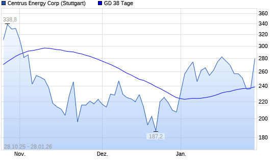 Mit dem Anstieg auf 239,60 EUR hat die Centrus Energy-Aktie am 27.01.2026 die 38-Tage-Linie nach oben gekreuzt.Die Centrus Energy-Aktie befindet sich seit dem 07.05.2025 im ...weiterlesen