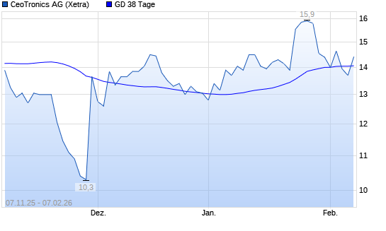Mit dem Anstieg auf 14,00 EUR hat die CeoTronics-Aktie am 06.02.2026 die 38-Tage-Linie nach oben gekreuzt.Die CeoTronics-Aktie befindet sich seit dem 08.01.2026 im langfristigen Aufwärtstrend ...weiterlesen