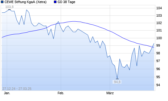 Mit dem Anstieg auf 98,90 EUR hat die Cewe Stiftung-Aktie am 26.03.2025 die 38-Tage-Linie nach oben gekreuzt.Die Cewe Stiftung-Aktie befindet sich seit dem 23.01.2025 im langfristigen Abwärtstrend ...weiterlesen