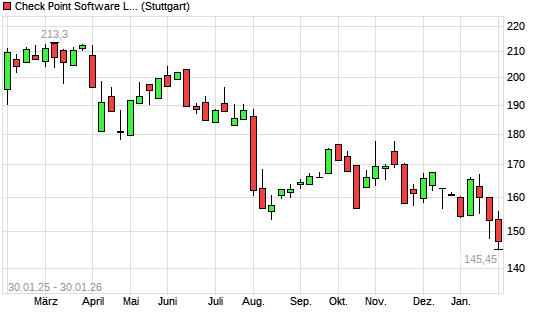 Mit dem Rücksetzer auf 147,90 EUR hat die Check Point Software-Aktie (ISIN IL0010824113) am 29.01.2026 ein neues 12-Monats-Tief erreicht und damit den Kurs vom 21.01.2026 eingestellt.Die ...weiterlesen