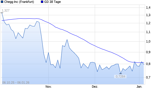 Mit dem Anstieg auf 0,80 EUR hat die Chegg-Aktie am 12.01.2026 die 50-Tage-Linie nach oben gekreuzt.Die Chegg-Aktie befindet sich seit dem 14.11.2025 im langfristigen Abwärtstrend und hat in ...weiterlesen