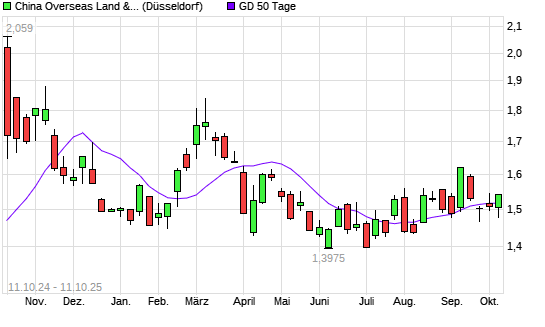 Mit dem Anstieg auf 1,54 EUR hat die China Overseas Land & Investment-Aktie am 10.10.2025 die 50-Tage-Linie nach oben gekreuzt.Die China Overseas Land & Investment-Aktie befindet sich seit ...weiterlesen