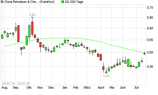 Mit dem Anstieg auf 0,50 EUR hat die China Petroleum & Chemical-Aktie am 22.07.2025 die 200-Tage-Linie nach oben gekreuzt.Die China Petroleum & Chemical-Aktie befand sich seit dem 10.01.2025 ...weiterlesen